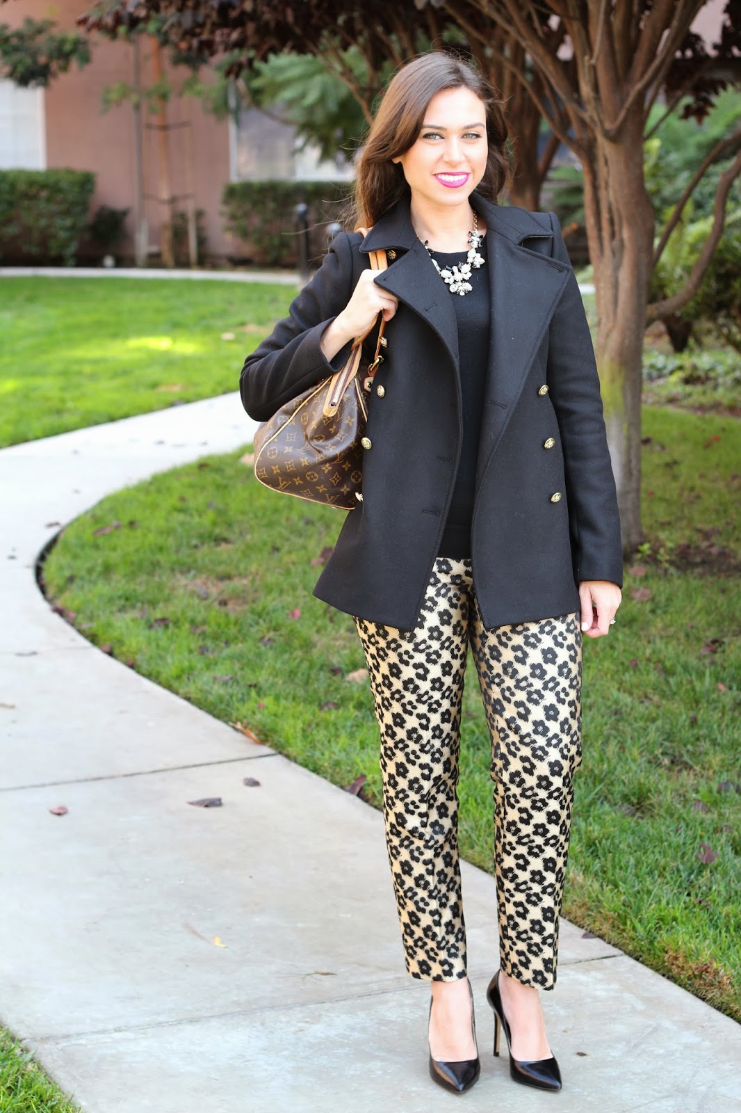 Pants, Ann Taylor :: Coat, Zara :: Heels, Zara {old}, similar here :: Purse, Louis Vuitton :: Necklace, JCrew {not online} :: Lipstick, Mac Rebel