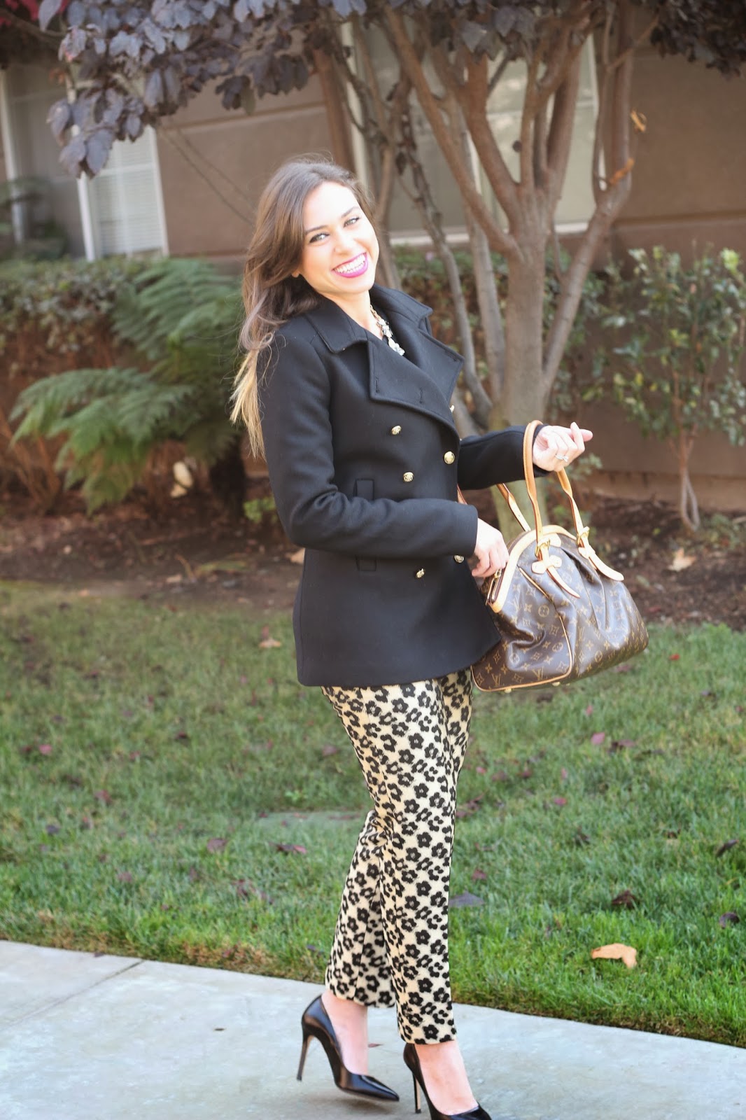 These are some of my favorite Ann Taylor pants. The pattern is actually floral, but it looks like a leopard print. The Zara coat is going to be my winter staple, as I can wear it both to work and for a night on the town.