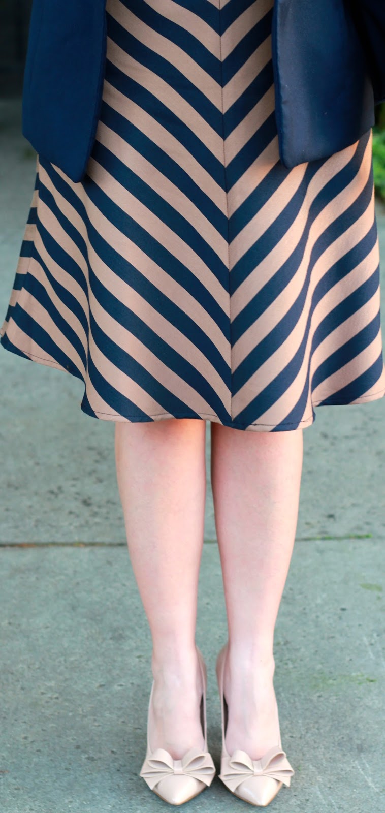 I absolutely adore Ann Taylor’s “Regents Striped” skirt. The silhouette is super flattering and I love the easy flow of the skirt.