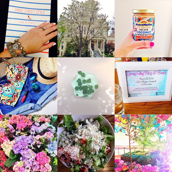 Anyway, my March recap: celebrated one of the last cousins to turn 21; finally read a book (“Paris Street Style” may not qualify as a book to some people, but at least it’s a start; don’t judge); my first trip to our State’s capital (albeit a brief, work trip); discovered how amazing almond butter + coconut is; Daylight Saving Time (i.e., enjoying longer days); beach day with the family; St. Patty’s Day; my first Blogger Brunch; pretty Spring display and yummy lunch at The Grove; and a girls day with my mama and sissies enjoying the cherry blossoms at Lake Balboa.