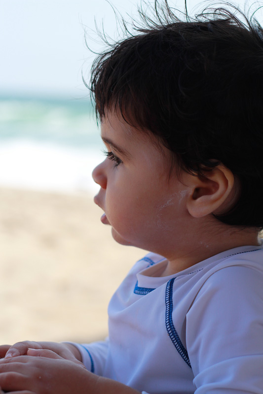 This was the first time his feet touched the water!