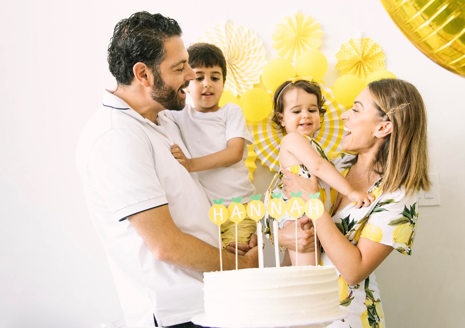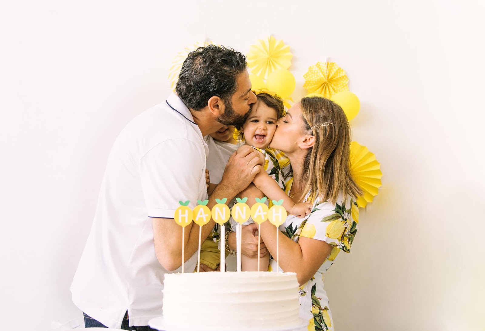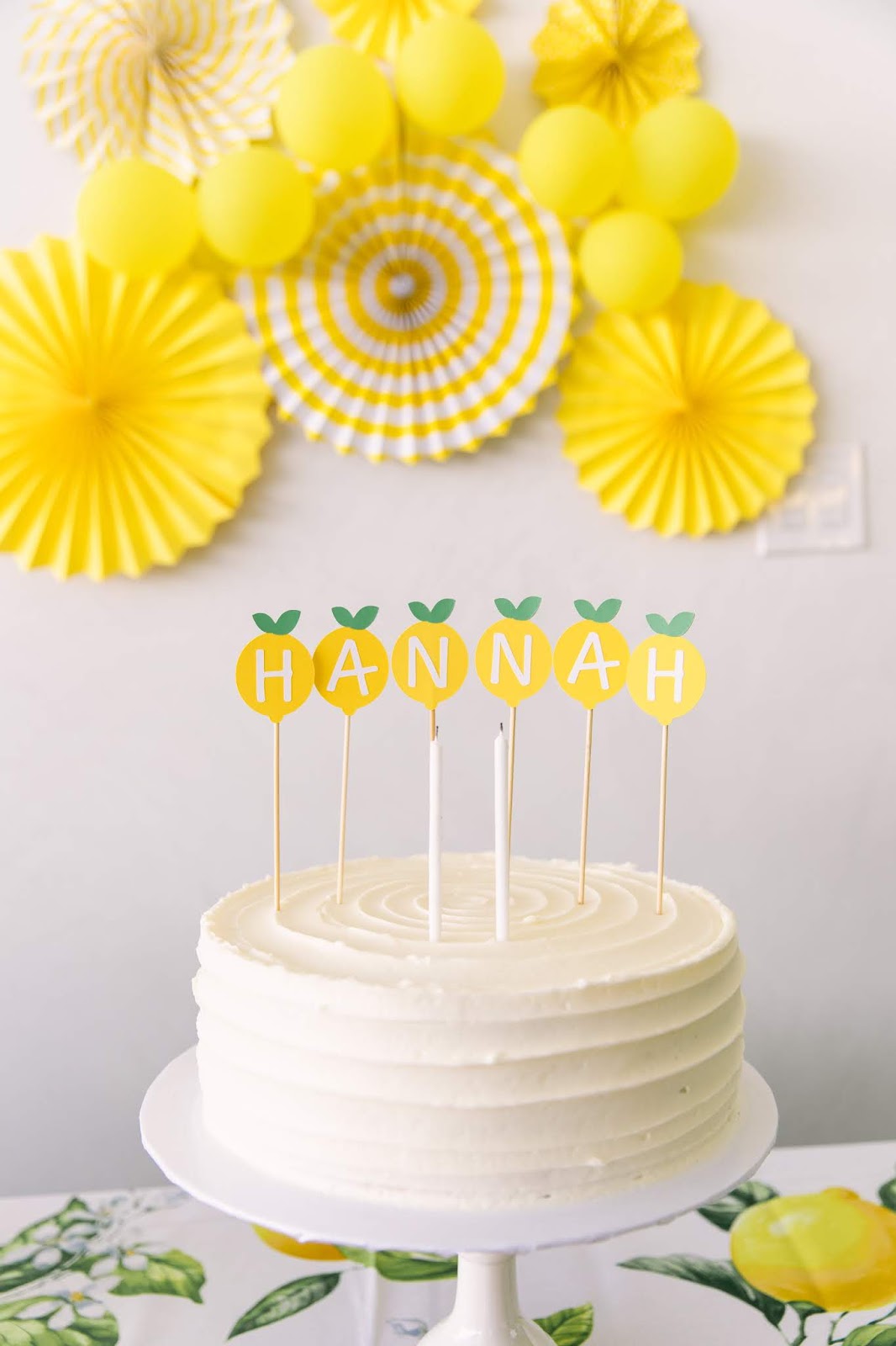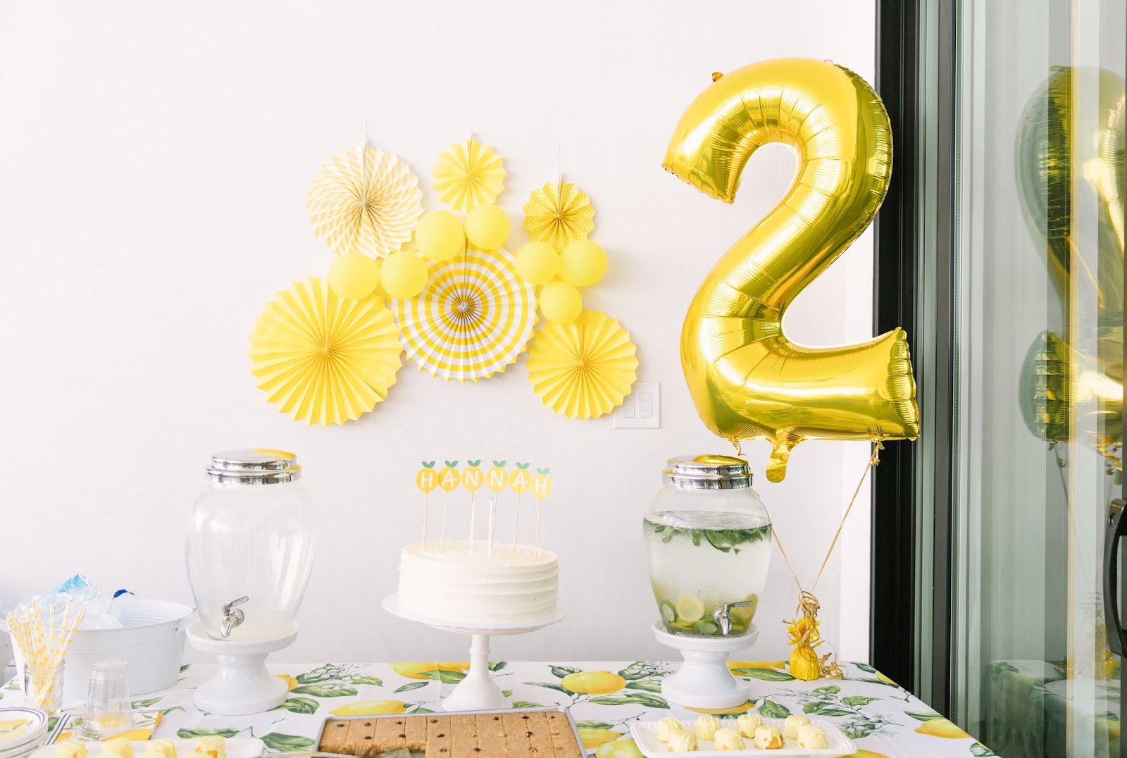 Today I’m sharing some photos and details from Hannah’s 2nd birthday party! I went super soft and feminine for her first birthday party, so this year I wanted to do something different. When I was at Party City a few months ago picking things up for Adam’s fiesta party, I saw these lemon plates and thought that it would be a super cute theme for Hannah’s party. I honestly wasn’t planning on throwing her a party this year. Instead, I wanted our Maui trip to be her birthday celebration. But then my husband basically went and guilted me into throwing her a party, so here we are LOL. As exhausting as it was to get this party together right after we came back from our trip, I have to admit it was so worth it. I didn’t think she’d really get it this year (which is why I wanted to pass on a big celebration), but she totally did; it was so stinkin’ cute! She was SO happy when everyone sang happy birthday to her and even knew how to blow out the candles on cue. So I’ll give this win to my hubby.
