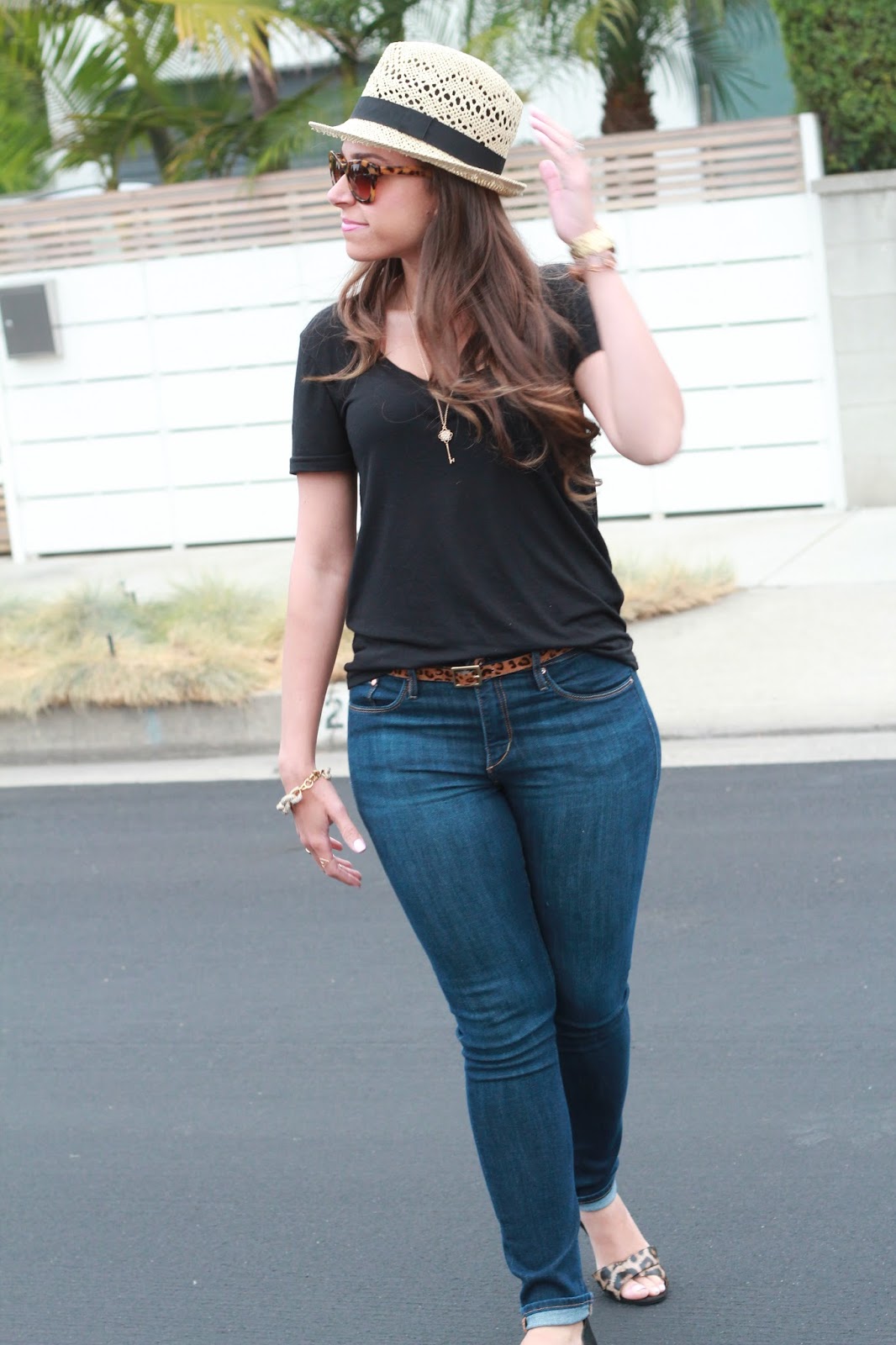 T-Shirt, Nordstrom :: Jeans, H&M {old} :: Sandals, Nine West via Marshalls :: Hat, Forever 21 :: Sunglasses, Anthropologie