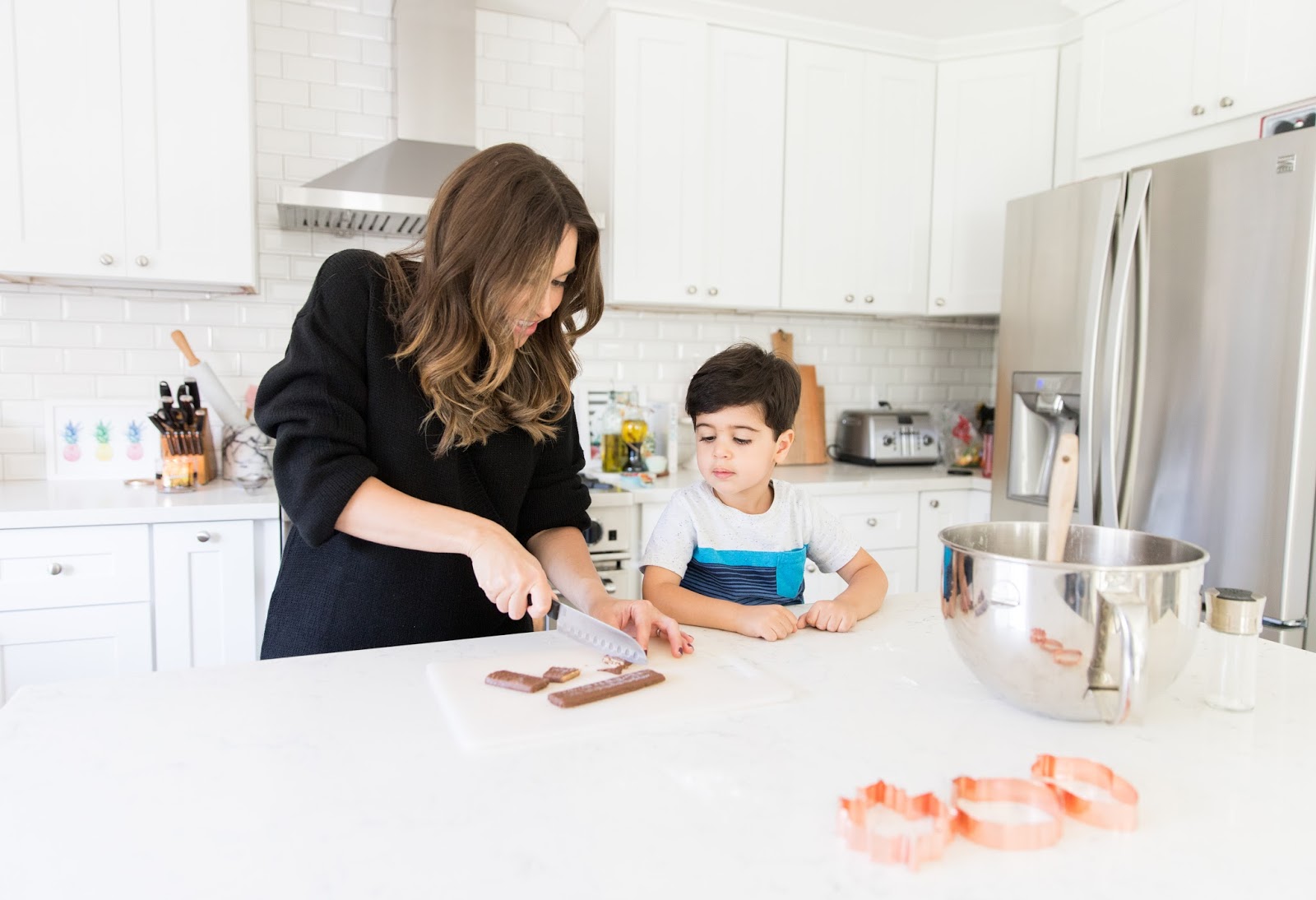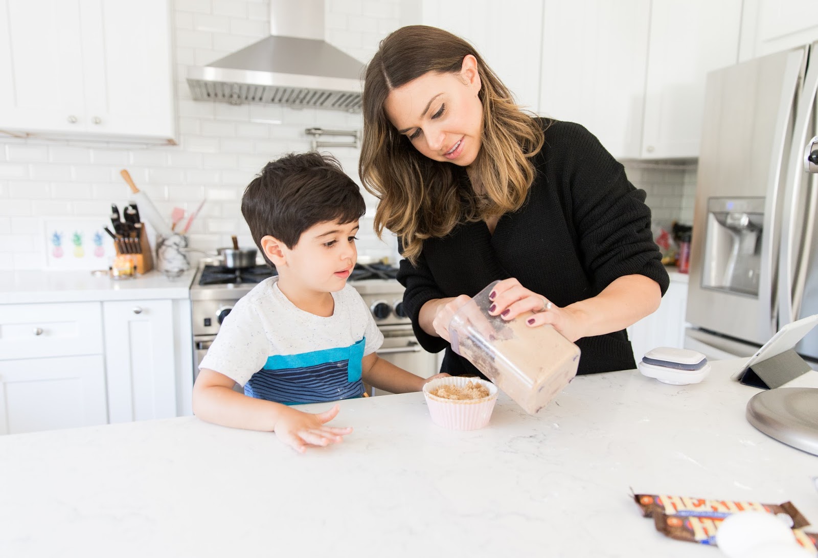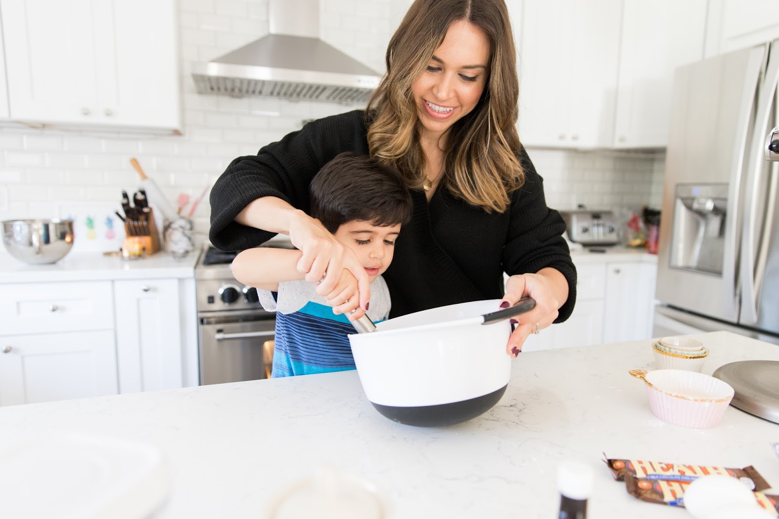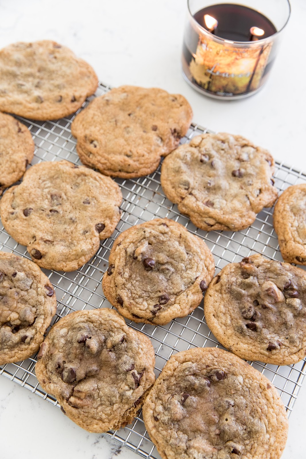 It’s no secret that baking is one of my favorite Fall activities. I love to get cozy at home, burn my favorite Fall candle and take in the aroma of yummy goodies baking in the oven. Now that A is old enough, I like to have him help out in the kitchen; it’s fun for him to see the process and he’s rewarded with a treat at the end! I’ve been wanting to make these brown butter and toffee chocolate chip cookies and I must say they did not disappoint! The toffee adds a nice little surprise and browning the butter gives them a special touch. If you want something a little different than the basic chocolate chip cookie, definitely give these a try!
