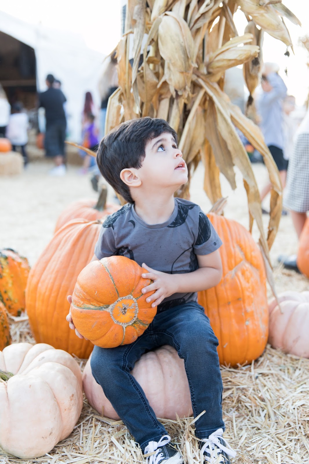 If you’ve been following my blog for a while, you know that we’ve gone to Mr. Bones Pumpkin Patch every year since A was born (you can see his first trip here and last year’s visit here). Looking at photos from those last couple years trips me out because it’s crazy to see how much A has changed; a year makes a huge difference! Going to Mr. Bones has become a special tradition for our family because it was Adam’s first trip to a pumpkin patch, and this year, Mr. Bones was kind enough to invite us back for Hannah’s first visit! These pictures crack me up because Hannah looks bored/pissed (look at the above photo; that’s some serious side-eye LOL) and Adam was just too distracted by all the festivities to pay the camera any attention. Thank you, Mr. Bones, for giving us these special family memories every year. I’m already anticipating next year’s trip!