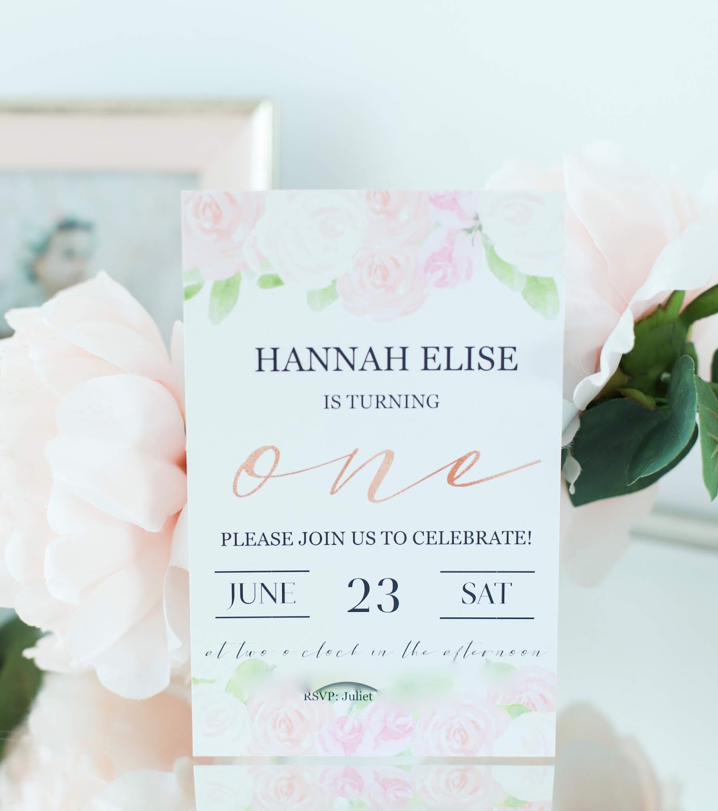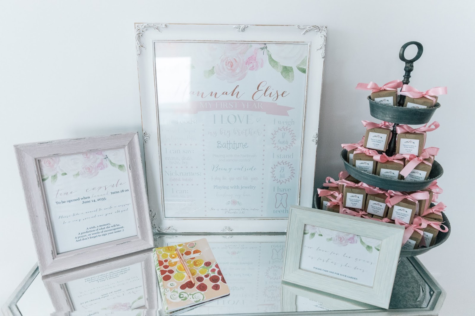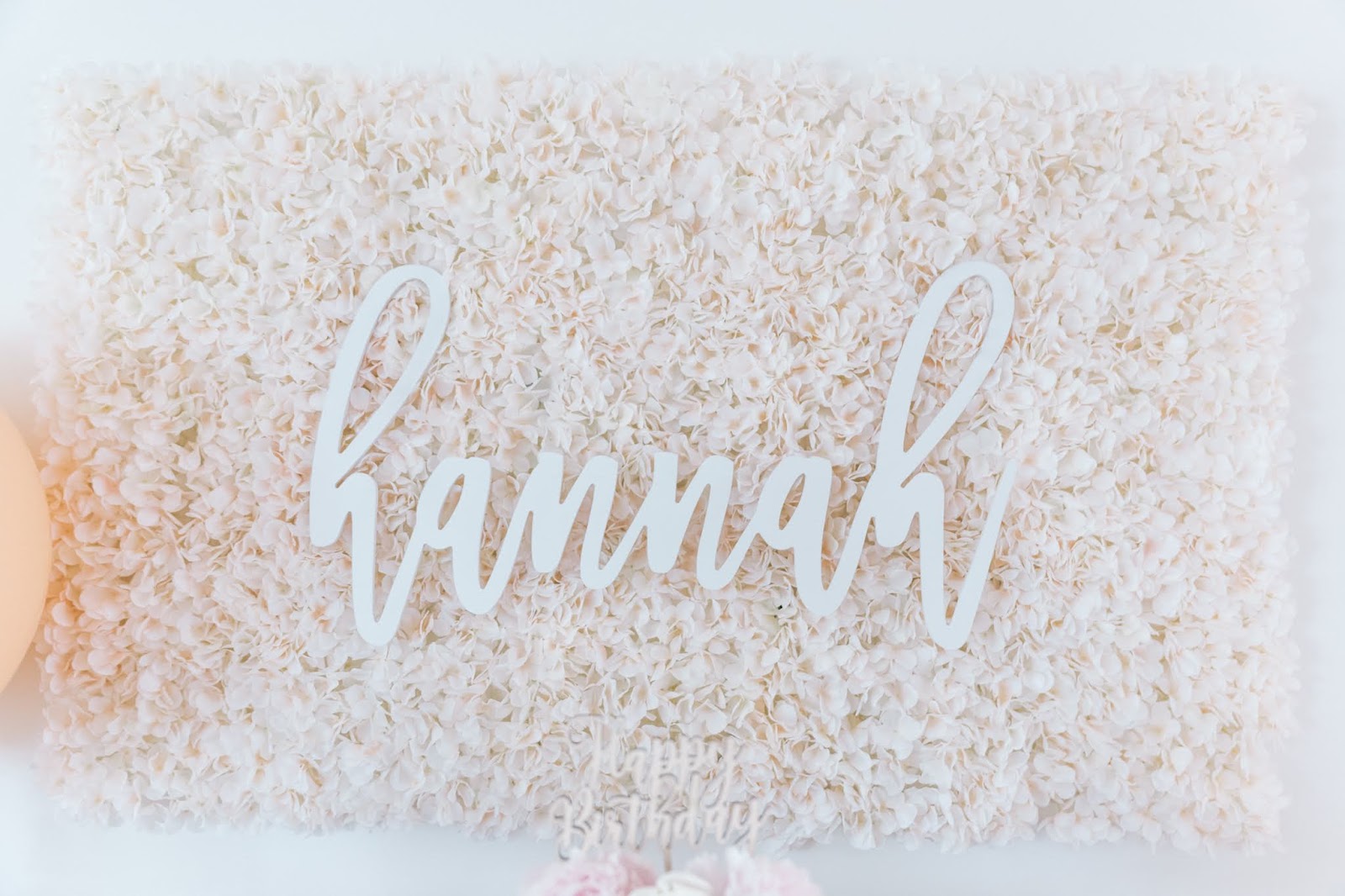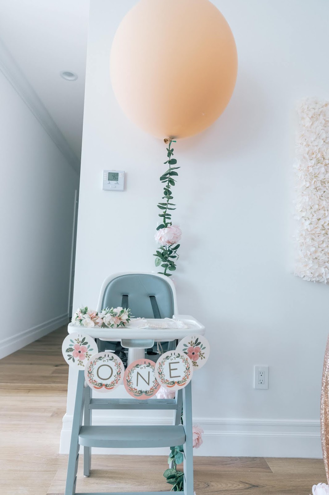 I’m so excited to finally share some (a ton) of photos from Hannah’s first birthday party. This party was quite the labor of love as I started (actively) planning it back in April. I tend to be a bit neurotic, so there’s no way I could save the planning for last minute. I wish I could, but there’s no way my type A personality would let me. So for 2 months, I took to Pinterest to plan the perfect floral first birthday party for my sweet Hannah Elise. With the exception of the food, pretty much everything was a DIY: the dessert table setup (do you know how much people charge for those things?!), the flower arrangements, the balloon arch (I posted an easy DIY tutorial here), the hoop frame for her monthly photos, the floral “H”, the floral vine for the 36-inch balloon, her first birthday poster and the dessert table backdrop. The thing with Pinterest is it tends to be a black hole; you get so sucked in and start pinning all these DIY projects in advance, but when the time comes to make them, you start to wonder why you ever thought you could accomplish so many projects at once. Oh, Pinterest….