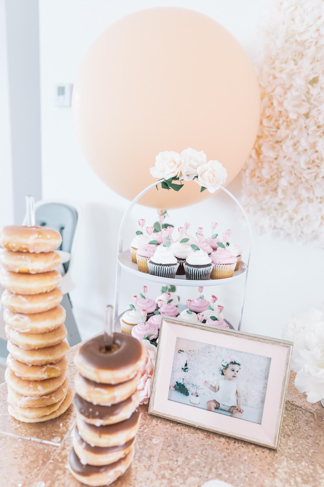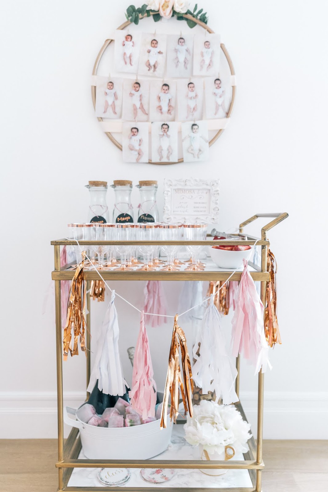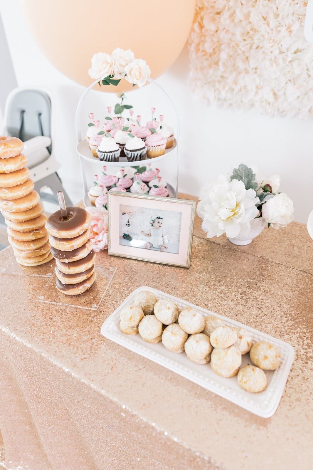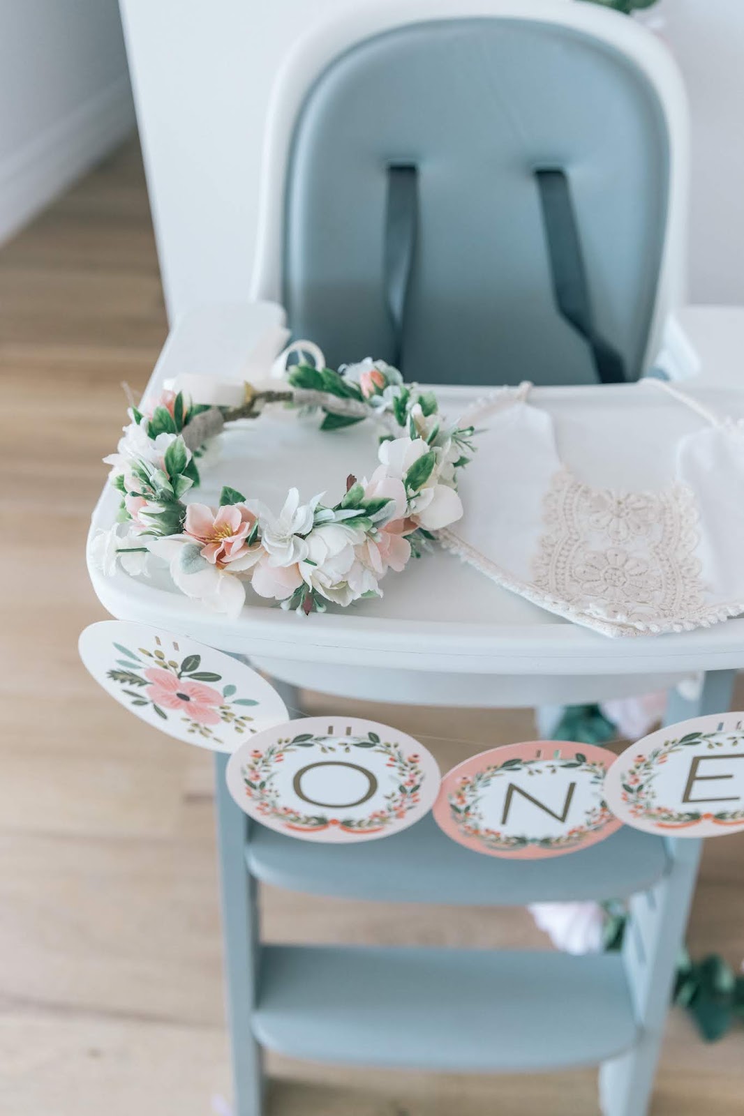 I’m so excited to finally share some (a ton) of photos from Hannah’s first birthday party. This party was quite the labor of love as I started (actively) planning it back in April. I tend to be a bit neurotic, so there’s no way I could save the planning for last minute. I wish I could, but there’s no way my type A personality would let me. So for 2 months, I took to Pinterest to plan the perfect floral first birthday party for my sweet Hannah Elise. With the exception of the food, pretty much everything was a DIY: the dessert table setup (do you know how much people charge for those things?!), the flower arrangements, the balloon arch (I posted an easy DIY tutorial here), the hoop frame for her monthly photos, the floral “H”, the floral vine for the 36-inch balloon, her first birthday poster and the dessert table backdrop. The thing with Pinterest is it tends to be a black hole; you get so sucked in and start pinning all these DIY projects in advance, but when the time comes to make them, you start to wonder why you ever thought you could accomplish so many projects at once. Oh, Pinterest….