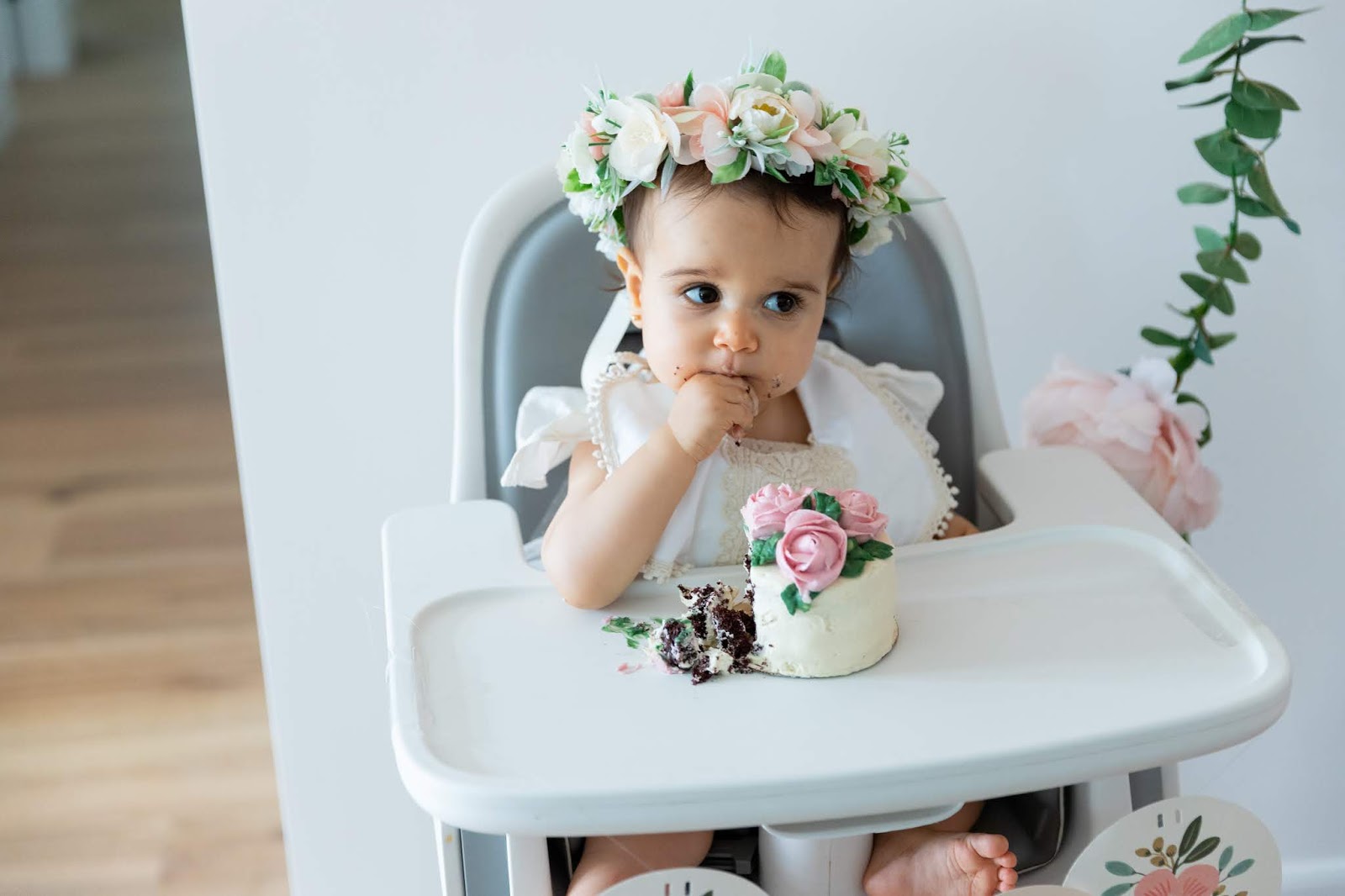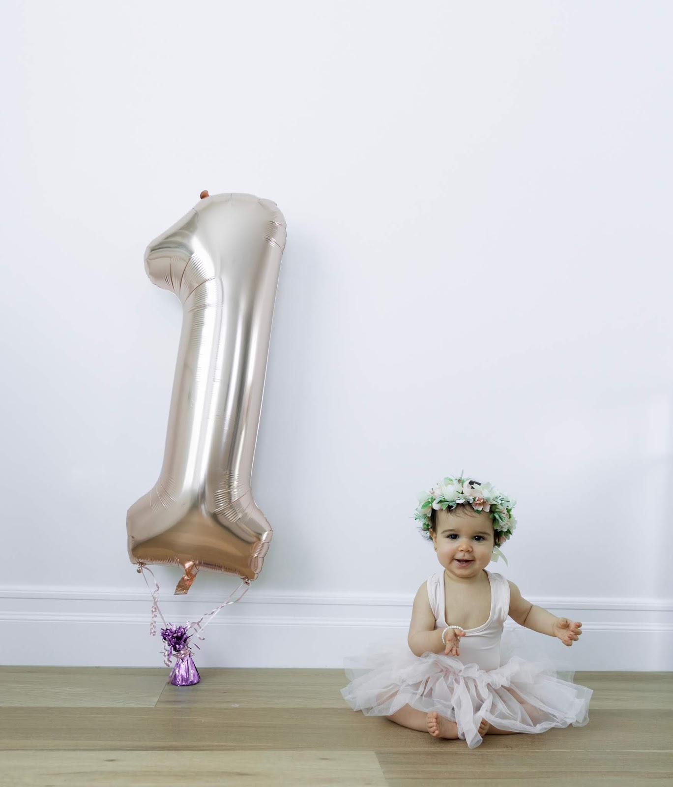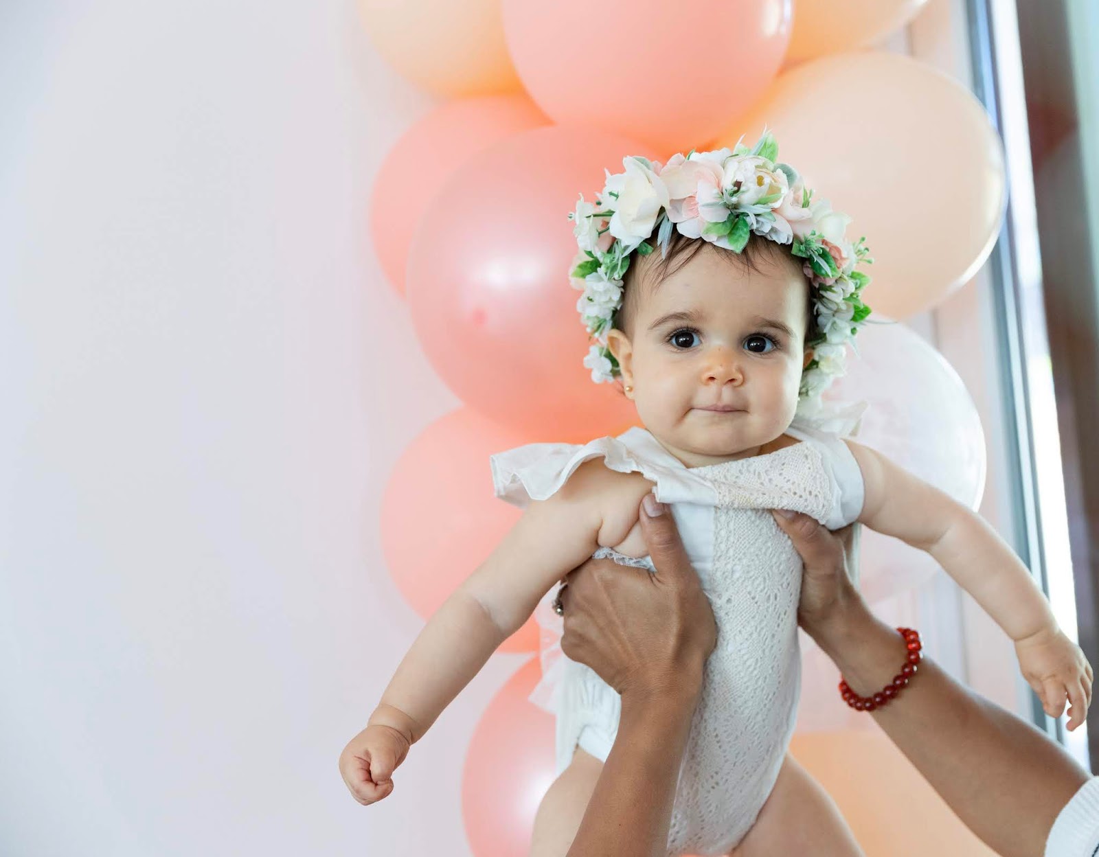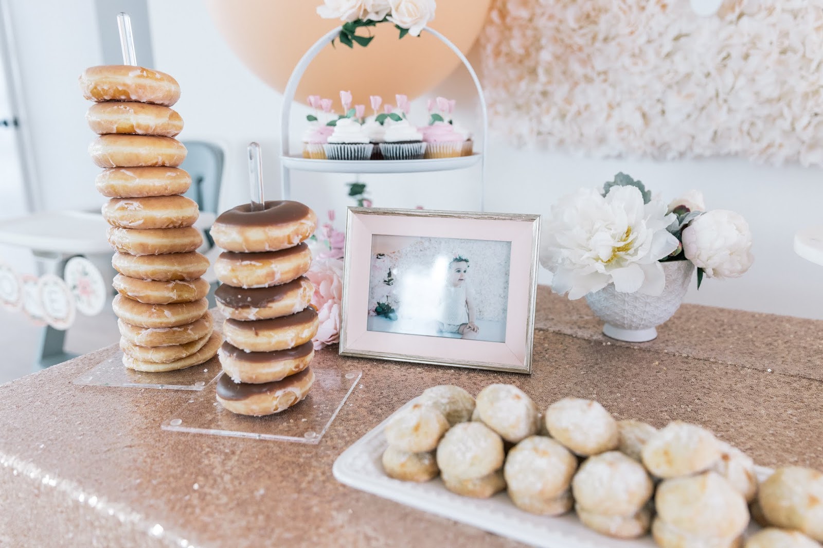 I’m so excited to finally share some (a ton) of photos from Hannah’s first birthday party. This party was quite the labor of love as I started (actively) planning it back in April. I tend to be a bit neurotic, so there’s no way I could save the planning for last minute. I wish I could, but there’s no way my type A personality would let me. So for 2 months, I took to Pinterest to plan the perfect floral first birthday party for my sweet Hannah Elise. With the exception of the food, pretty much everything was a DIY: the dessert table setup (do you know how much people charge for those things?!), the flower arrangements, the balloon arch (I posted an easy DIY tutorial here), the hoop frame for her monthly photos, the floral “H”, the floral vine for the 36-inch balloon, her first birthday poster and the dessert table backdrop. The thing with Pinterest is it tends to be a black hole; you get so sucked in and start pinning all these DIY projects in advance, but when the time comes to make them, you start to wonder why you ever thought you could accomplish so many projects at once. Oh, Pinterest….