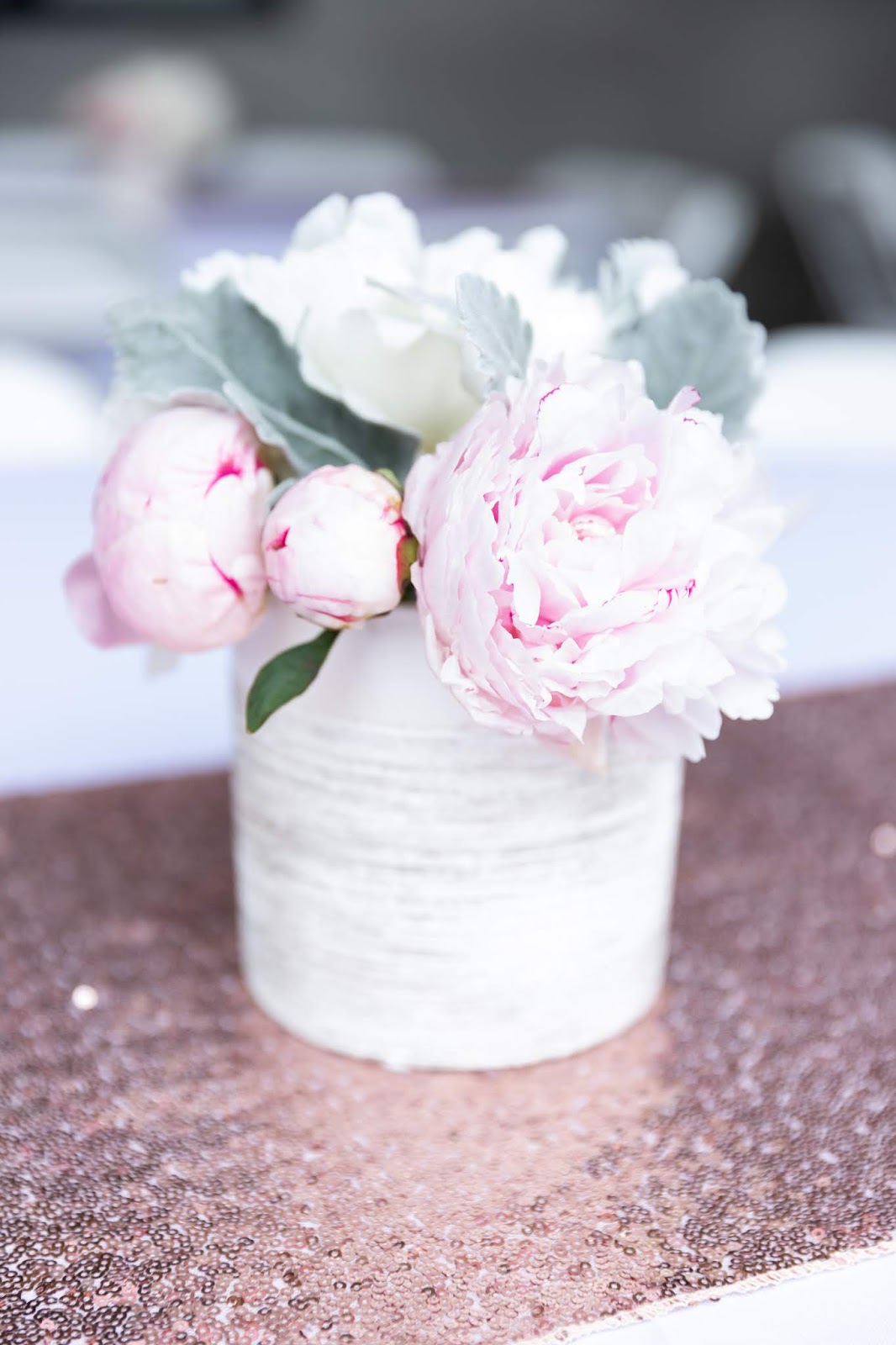 Dessert table backdrop: DIY, floral mats from Michael’s placed together (for reference, I used a total of 15, placed in a 3×5 grid)