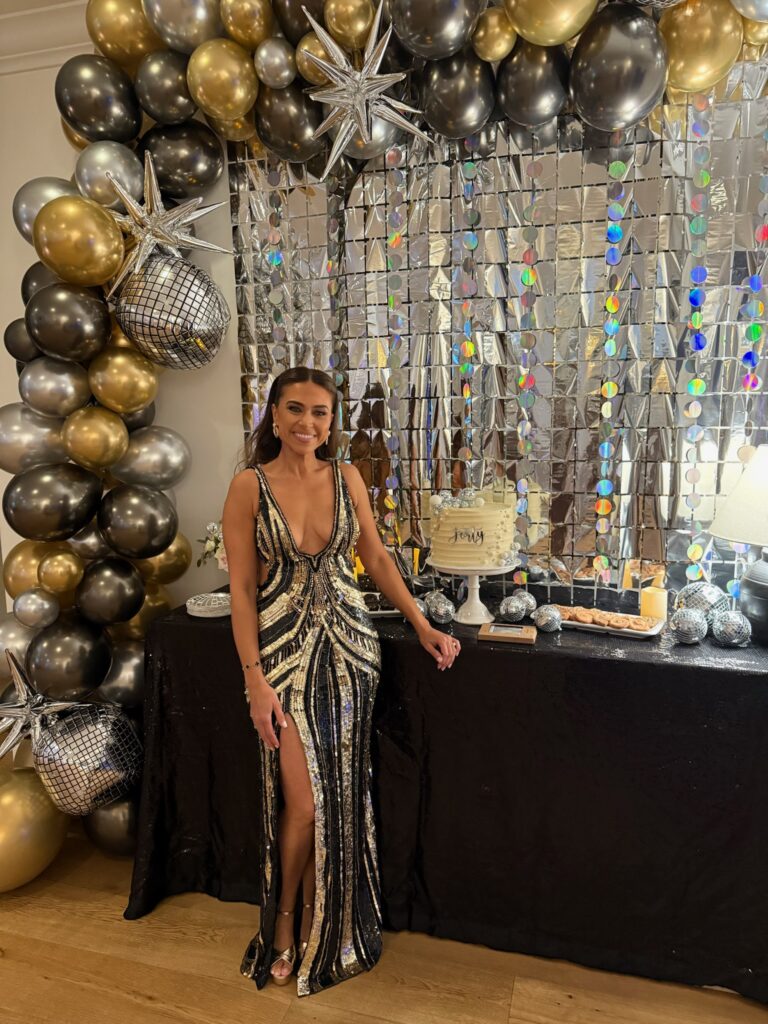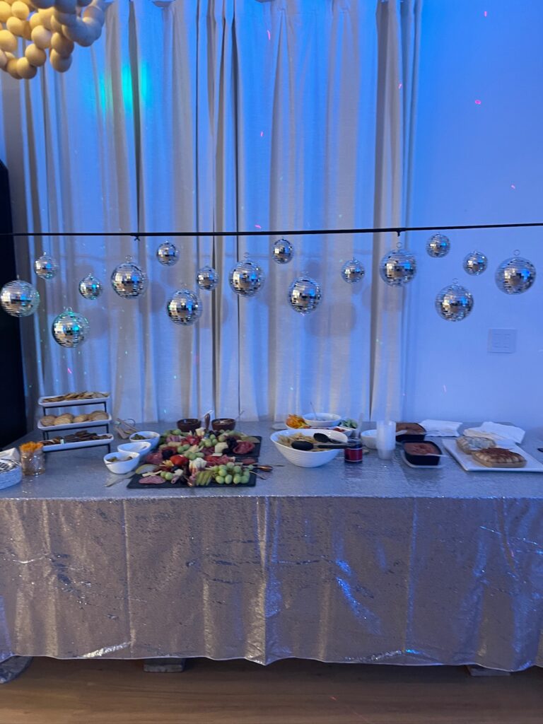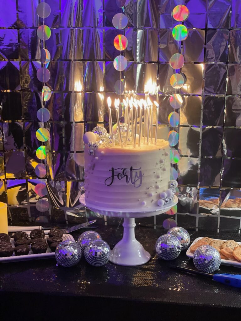 For my 40th, I decided to go with a “Studio ’84” Disco theme, as a spin on the famous Studio 54. We ate, drank and danced the night away. You can check out my Instagram Reel for a more in-depth look at the party and I’ll list all my vendors and sources below (affiliate links).